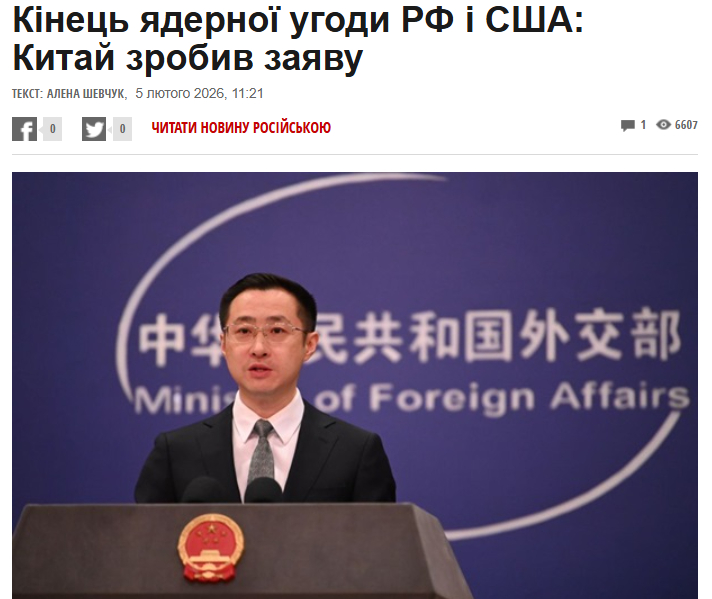 - “Кінець ядерної угоди РФ і США: Китай зробив заяву” (Kореспондент.net)