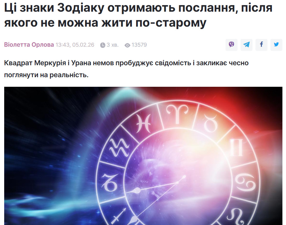 - “Ці знаки Зодіаку отримають послання, після якого не можна жити по-старому” (УНІАН)
