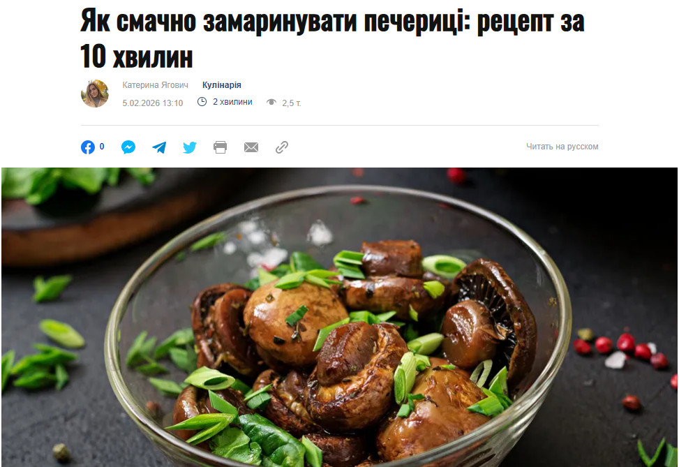 - “Як смачно замаринувати печериці: рецепт за 10 хвилин” (OBOZ.UA)