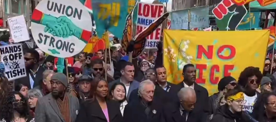 За оцінками поліції, на мітинг прийшли десятки тисяч людей, натовп розтягнувся на понад 10 кварталів у центрі Мангеттена.