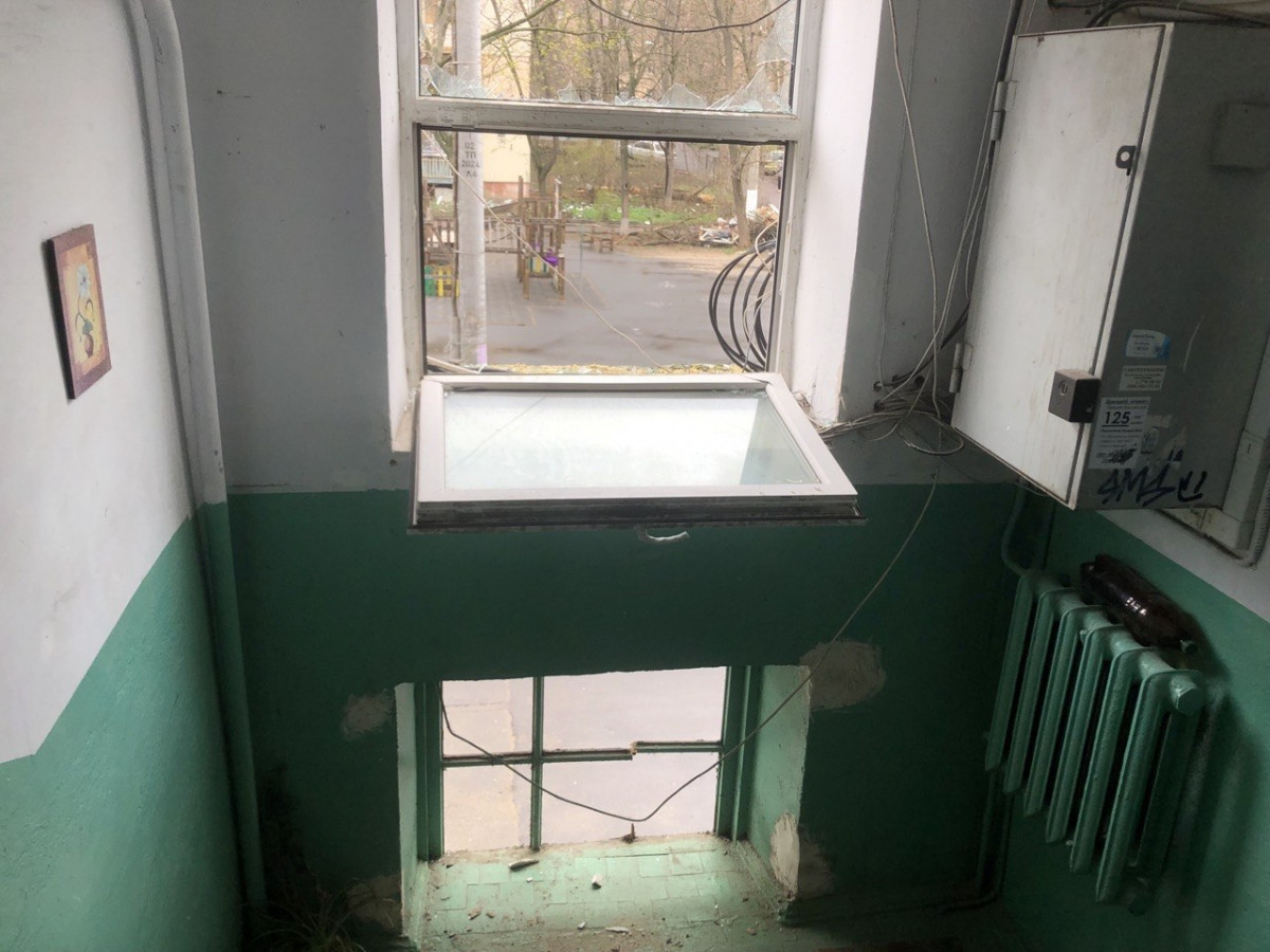 «До мене звернулася сусідка — бабуся така, з квартири поруч. Вона живе одна, в неї з хребтом проблеми. Тому я пішла до неї прибирати уламки скла. В неї вилетіли абсолютно всі вікна. Я десь годину прибирала це скло, винесла п’ять-шість відер його. Сусіди прибирали скло всю ніч. В суботу до нас приходив ЖЕК — роздавали плівку. А вчора був оперативний штаб — теж роздавали плівку, збирали документи на компенсацію пошкоджень», — повідомила журналістка.
