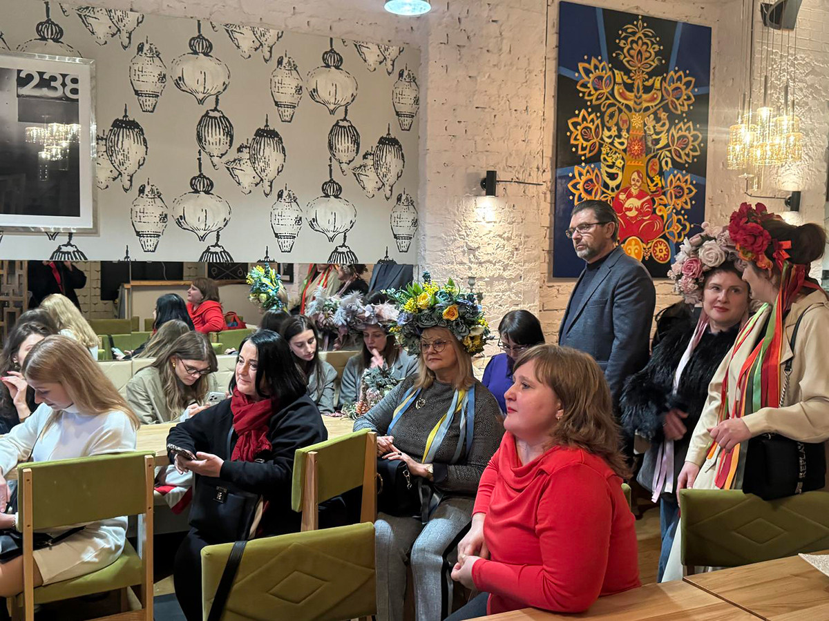 Відкриття виставки «Великодній сад» проходило у форматі арт-вечірки. Можна було подивитись картини та розпитати авторку про ту чи іншу роботу, а також зробити яскраві селфі в авторських вінках Надії Козаченко та послухати живу музику від Марії Кононової та Олени Степанюк й долучитись до хороспівів.