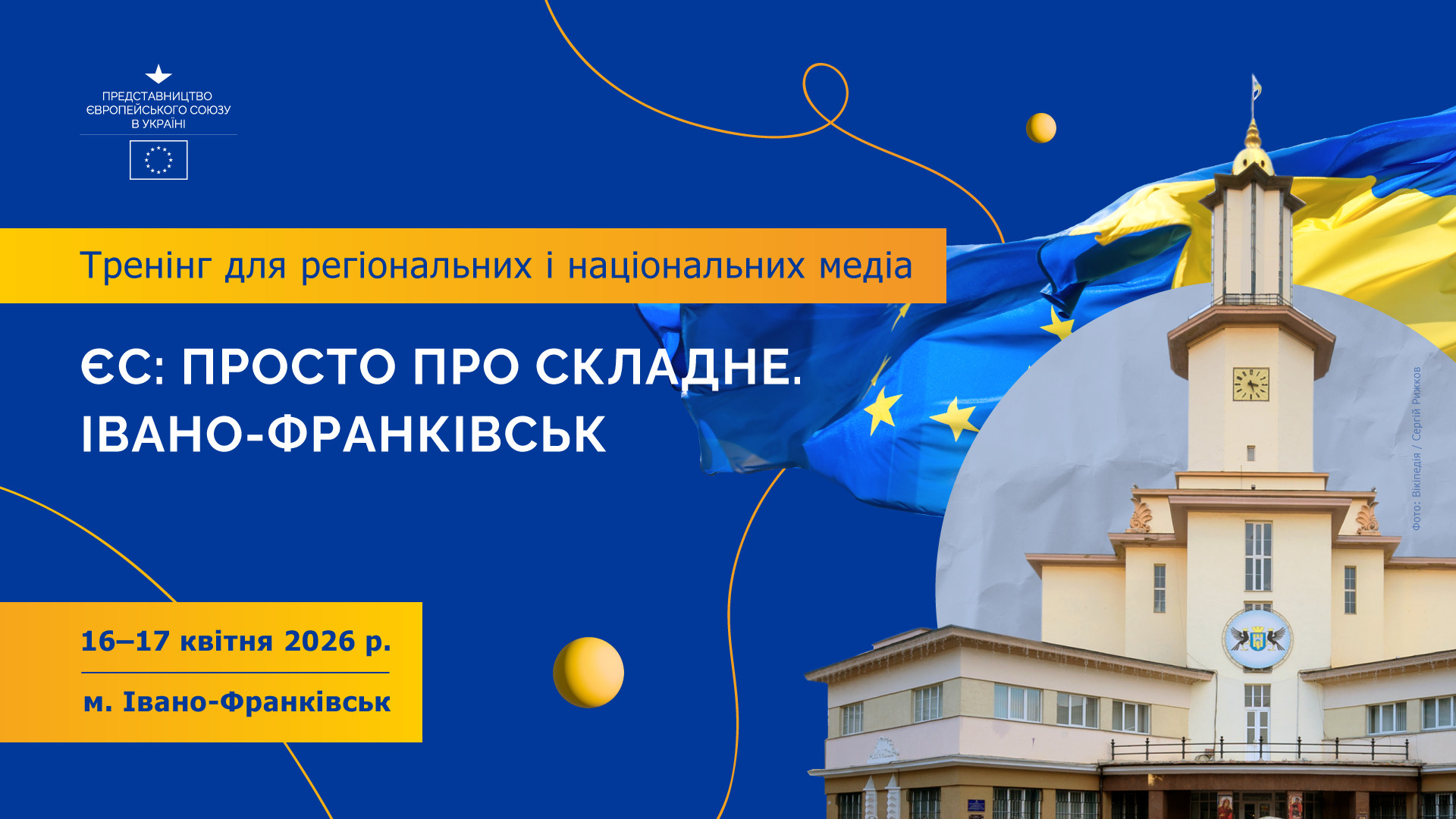 Представництво ЄС в Україні запрошує представників медіа з усієї України до участі у дводенному тренінгу “ЄС: просто про складне. Івано-Франківськ”, який відбудеться 16-17 квітня 2026 року в Івано-Франківську (офлайн).