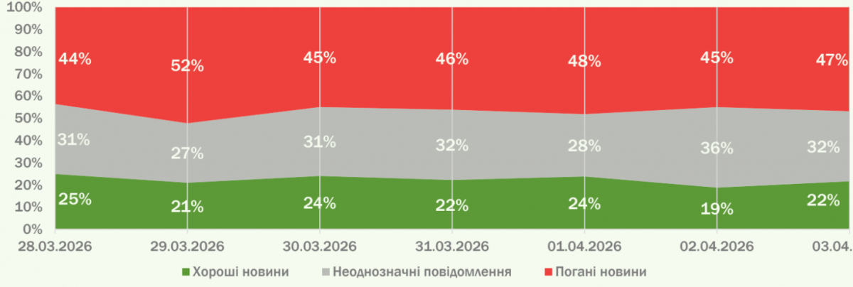 Українська спільнота трохи менш ніж третину уваги приділяє обстрілам. Триває обурення через заяви Д. Трампа, меншу увагу викликають українські пропозиції світу (як-от деблокування Ормузької протоки).