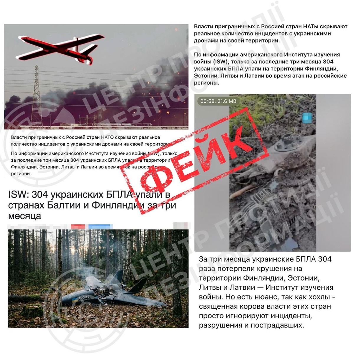 Російські пропагандистські ресурси поширювали інформацію про нібито 304 українські безпілотники, які впали на території країн Балтії та Фінляндії за останні три місяці. У повідомленнях стверджувалося, що місцева влада приховує ці інциденти, а також їхні наслідки — руйнування та постраждалих.