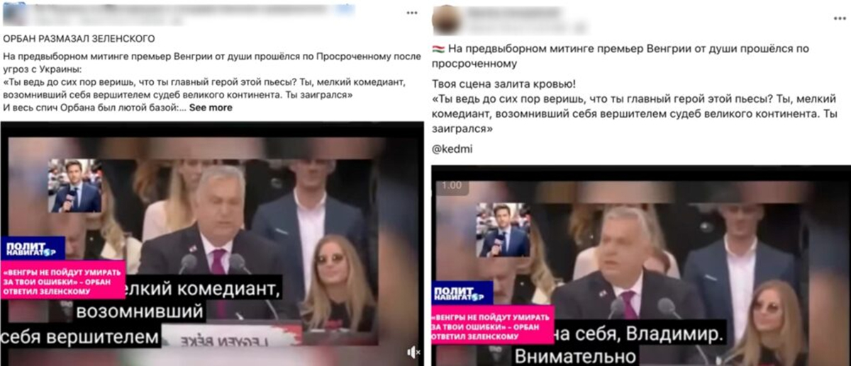 Російські пропагандисти наклали на відео фейковий переклад, який суттєво спотворює зміст виступу. В оригіналі Орбан критикував політику ЄС, висловлював скепсис щодо вступу України до Євросоюзу та наголошував на важливості миру й суверенітету, але не робив персональних нападок.