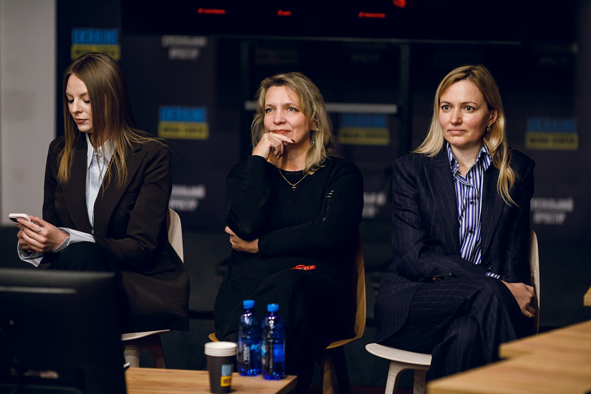 На фото: Керівниця напрямку стратегічних партнерств і впливу у DII Ukraine Марія Вереітіна, Координаторка проєкту Кластер релокованих медіа, редакторка сайту Маріуполя 0629.com.ua Анна Мурликіна та Любов Раковиця