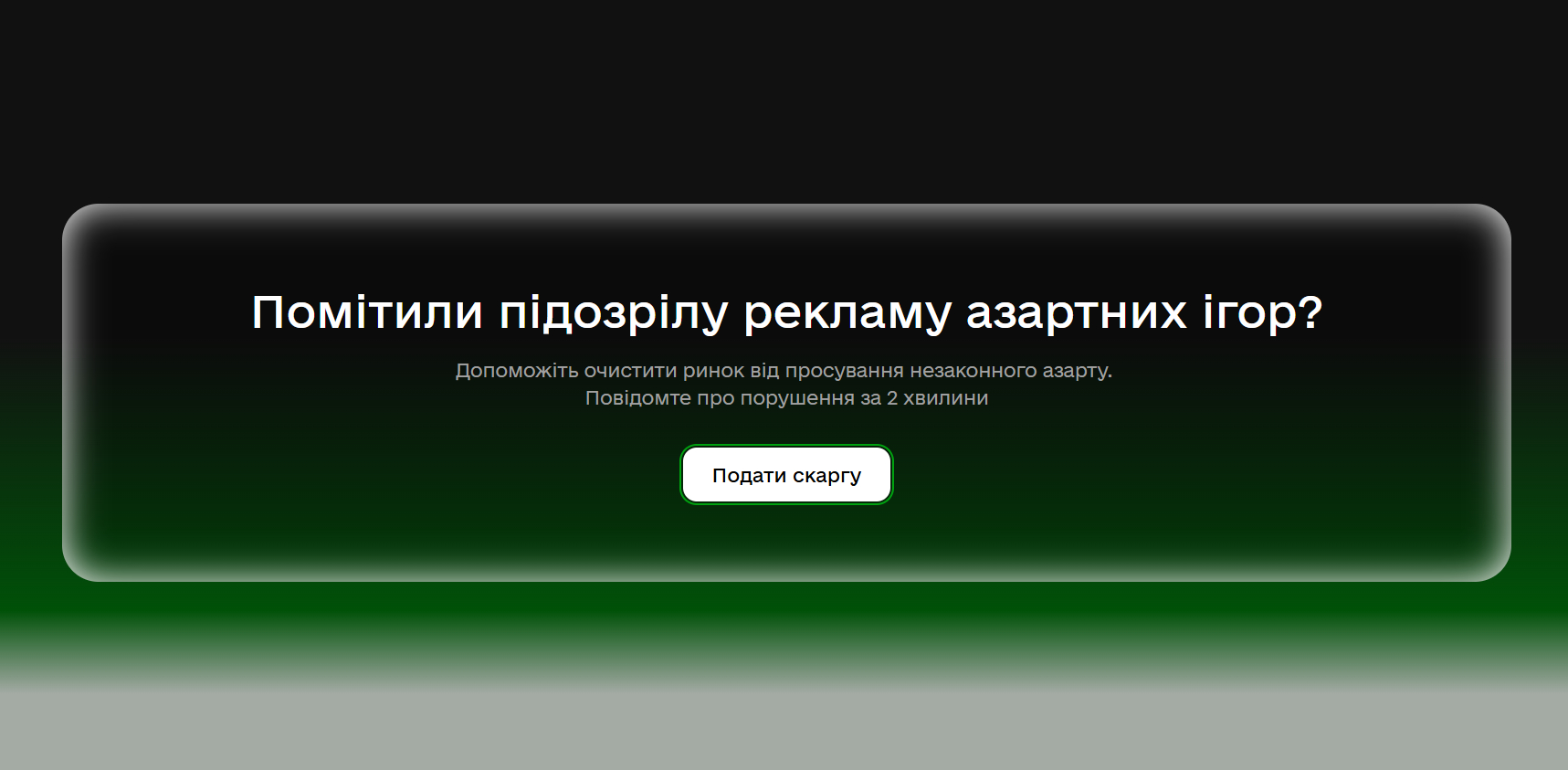 Поскаржитися на незаконну рекламу азартних ігор в соціальних мережах, на сайтах, на телебаченні, радіо та в інших медіа, а також у зовнішній рекламі чи публічному просторі можна через онлайн-форму.