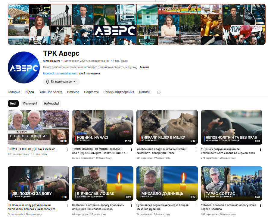 Телеканал “Аверс” у ютубі