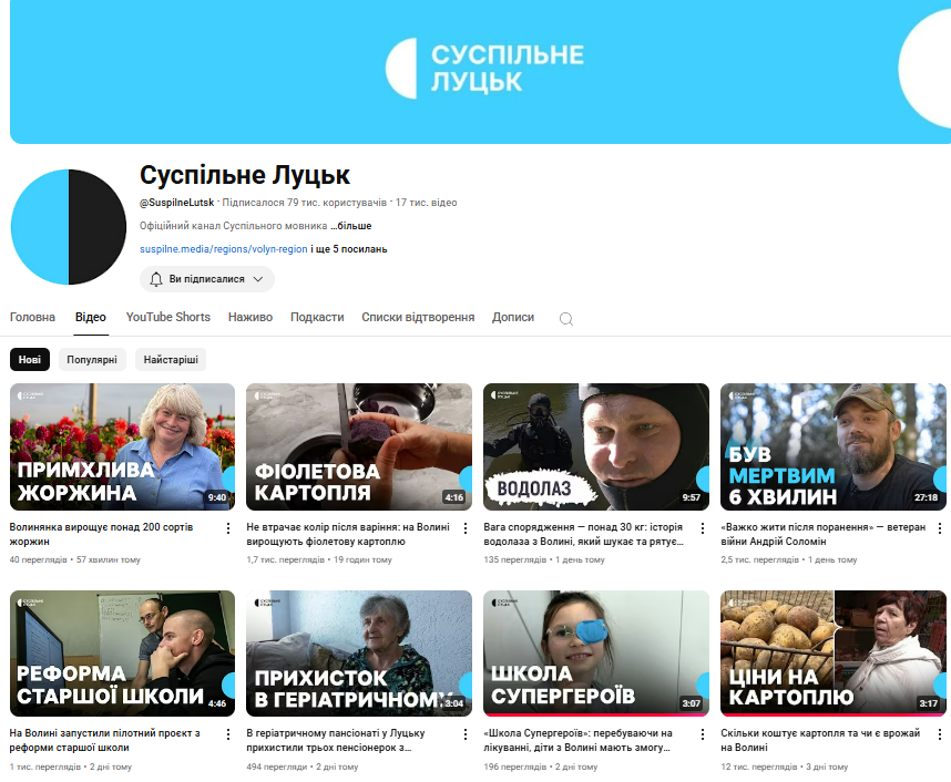 Ютуб-канал “Cуспільне Луцьк” – офіційний канал Суспільного