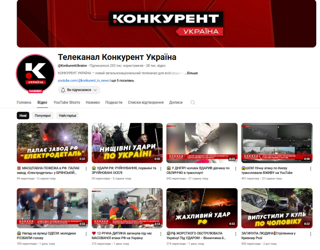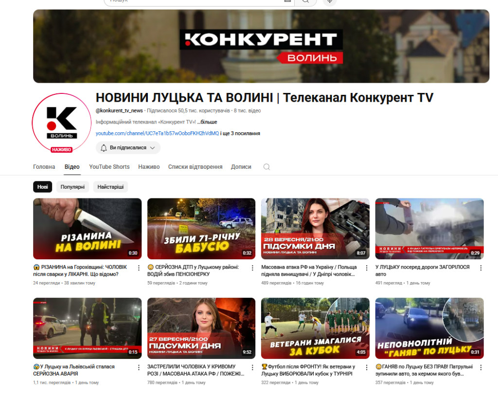 Ютуб-канал “Новини Луцька та Волині / телеканал “Конкурент TV” з’явився 16 вересня 2021 року. Зараз на каналі 50,5 тисячі підписників та понад 8 тисяч відео.