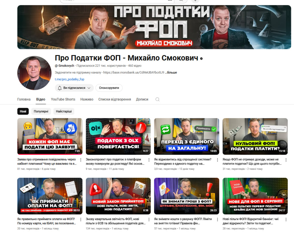 Серед найновіших відео на каналі – про подання заяви щодо отримання документів через електронний кабінет платника податків, адже через її відсутність ФОПи отримують іноді неприємні “сюрпризи” від податкової: штрафи, втрату єдиного податку, повідомлення, про які навіть не знали.
