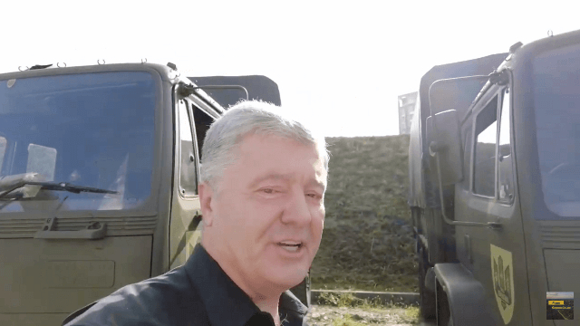 Петро Порошенко розповідає про передання автомобілів ЗСУ на День Прапора та День Незалежності України. Скриншот з відео каналу “Рівне Європейське”