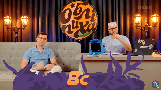 Програма “Обліпиха” з відомим рівненським лікарем-анестезіологом Павлом Сільковським. Ведучий і лікар проходять квіз і вгадують відповіді. Скриншот з YouTube-каналу “Рівне онлайн”