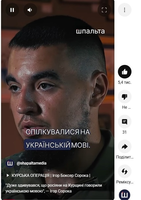 Короткий, емоційний формат отримує найбільше переглядів та коментарів. Якщо повноформатні відео користувачі коментують тільки іноді, то Shorts отримують десятки й навіть сотні коментарів. До прикладу, повноформатне інтерв’ю з командиром взводу розвідки Ігорем Сорокою про Курську операцію отримало наразі 1 тисячу переглядів та 42 вподобання. Водночас фрагменти з інтерв’ю: “Казав хлопцям, що ми йдемо на смерть”, – командир про Курську операцію” має 672 тисячі переглядів та 20 тисяч уподобань; “Військовий 82-ї бригади про оборону Запорізької АЕС” – 17 300 переглядів і понад 1 тисячу вподобань.