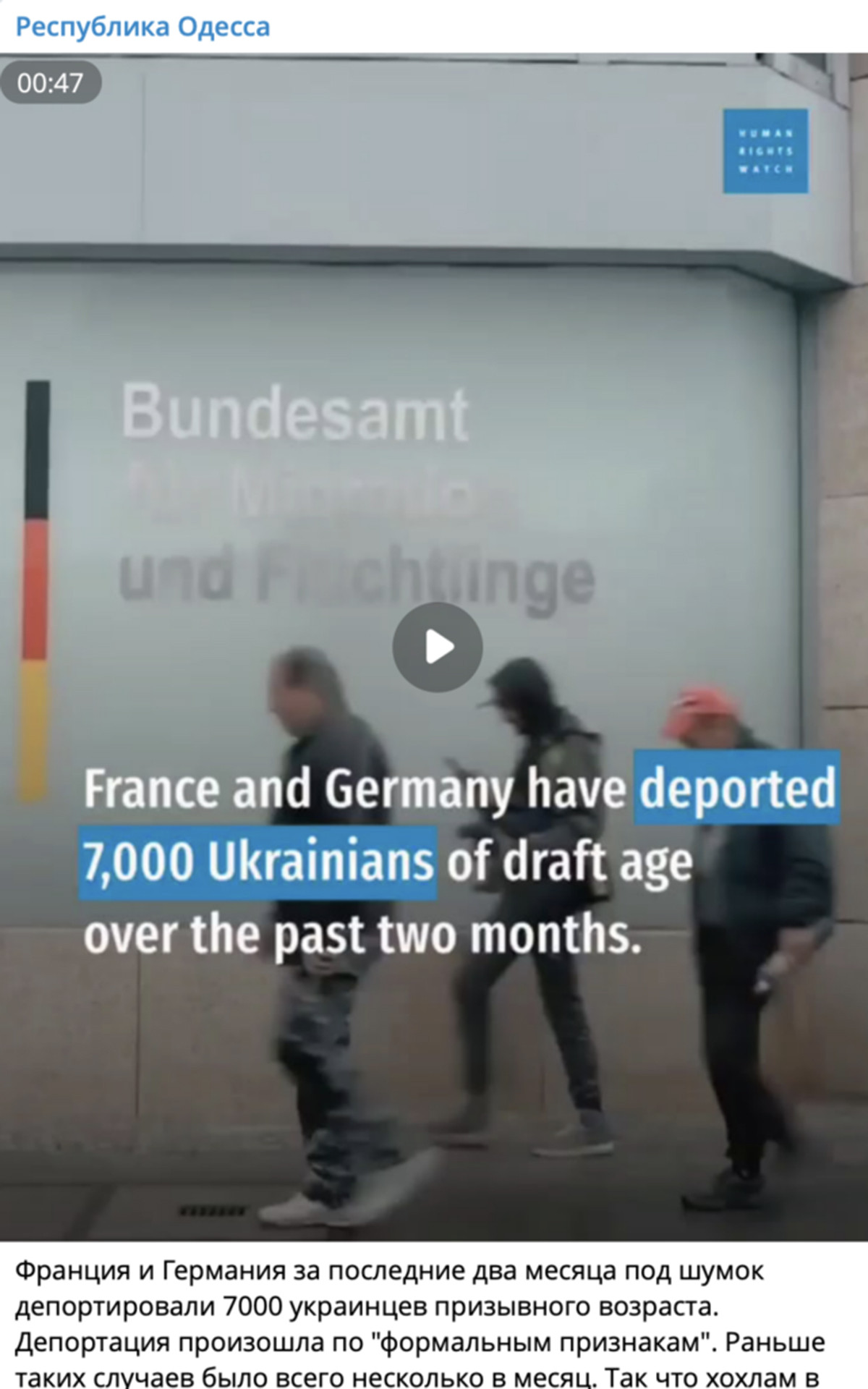 Проросійські медіа продовжують поширювати повідомлення про те, що Німеччина та Франція нібито депортували понад 7000 українців призовного віку протягом останніх двох місяців. У таких матеріалах автори посилаються на «джерела» або маловідомі канали, часто без жодної перевіреної інформації.