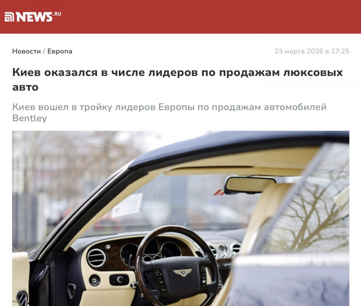 Російські медіа написали, що Київ нібито посів третє місце в Європі за кількістю придбаних автомобілів Bentley, що мало б свідчити про «розкішне життя» українців під час війни.