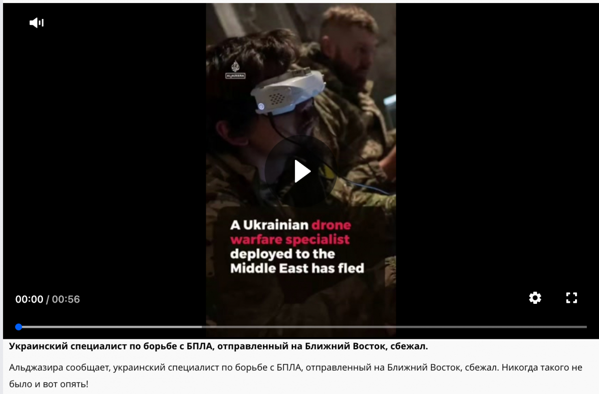 У мережі поширили відео з логотипом Al Jazeera, в якому стверджувалося, що український спеціаліст із боротьби з дронами нібито втік під час відрядження на Близький Схід.