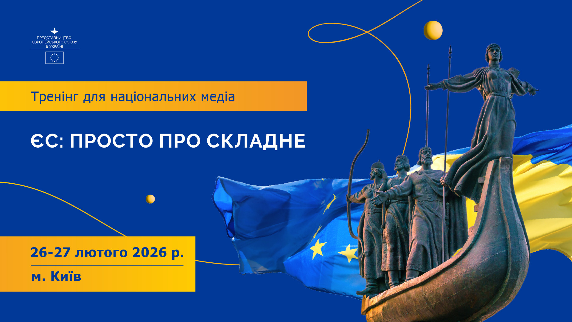 Представництво Європейського Союзу в Україні запрошує журналістів національних медіа на дводенний тренінг «ЄС: просто про складне», який відбудеться в Києві 26–27 лютого 2026 в офлайн-форматі. Про це повідомила пресслужба представництва.