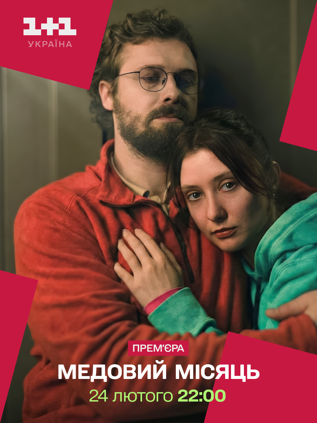 А ввечері 24 лютого о 22:00 канал покаже телепрем’єру українського фільму «Медовий місяць». Це повнометражний ігровий дебют режисерки та сценаристки Жанни Озірної. Події фільму розгортаються у невеликому містечку поблизу Києва. За сюжетом, 23 лютого 2022 року Тарас і Оля святкують новосілля разом із друзями. Після вечірки вони залишаються у своїй новій квартирі, а на світанку починається повномасштабна війна. Російські війська входять у місто — і Тарас з Олею опиняються у квартирі без електрики, води та зв’язку.
