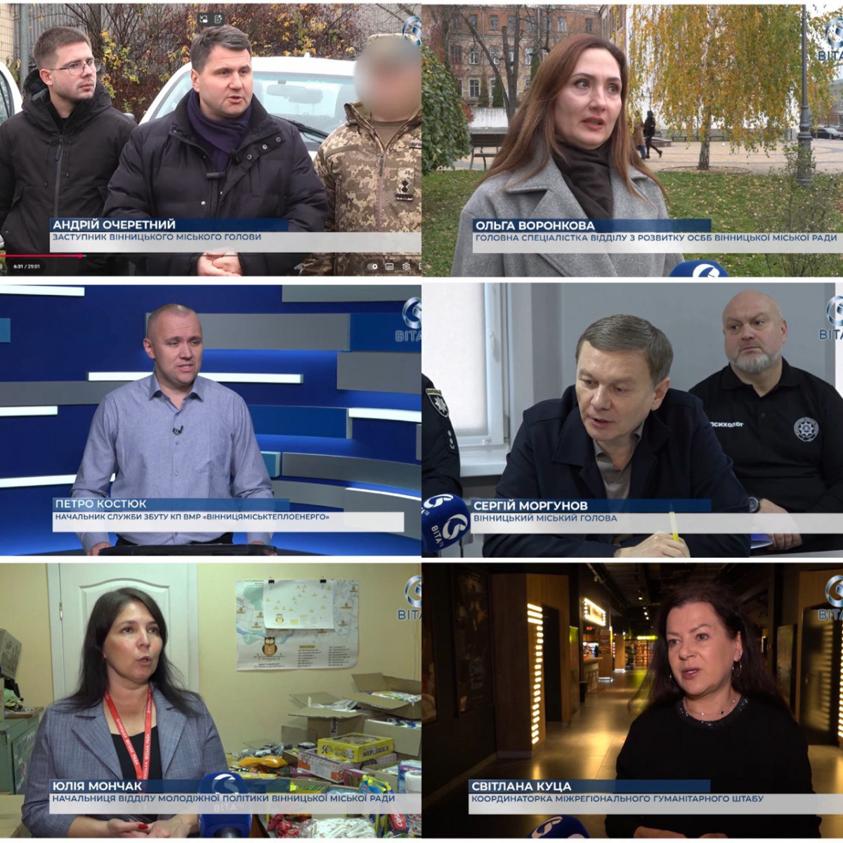 Так, у першому сюжеті Сергій Моргунов передає автівки і дрони для фронту. В другому — заступник міського голови Андрій Очеретний розповідає про ваучерну підтримку бізнесу від міської ради. У третьому — начальниця міського центру соціальних служб Наталія Добровольська говорить про акцію «16 днів проти насильства». У ввімкненні вже не чиновник, а Алла Студілко — голова ГО «Джерело надії України». Однак у п’ятому сюжеті знову з’являються посадовці: заступник міського голови Владислав Скальський і Янна Чайковська, директорка КП «Інститут розвитку міста», під час обговорення стратегії громади. В шостому — вже згаданий Андрій Очеретний презентував проєкт бюджету громади Вінницькому національному технічному університету.