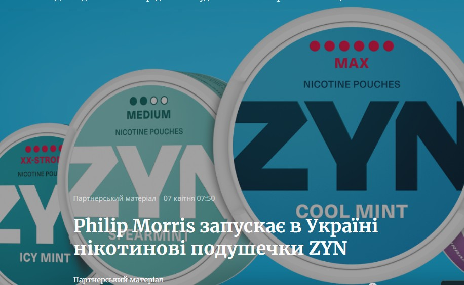 Як ідеться на сайті Нацради, Forbes отримав припис за розміщення на своєму сайті статті «Philip Morris запускає в Україні нікотинові подушечки ZYN». Цей матеріал маркований як партнерський. «Вищезазначена стаття містила розміщення фотографій упаковок нікотинових подушечок, а також інформацію про те, що нікотинові подушечки є альтернативою для повнолітніх споживачів нікотину, та способи їх купівлі», — йдеться у повідомленні регулятора.