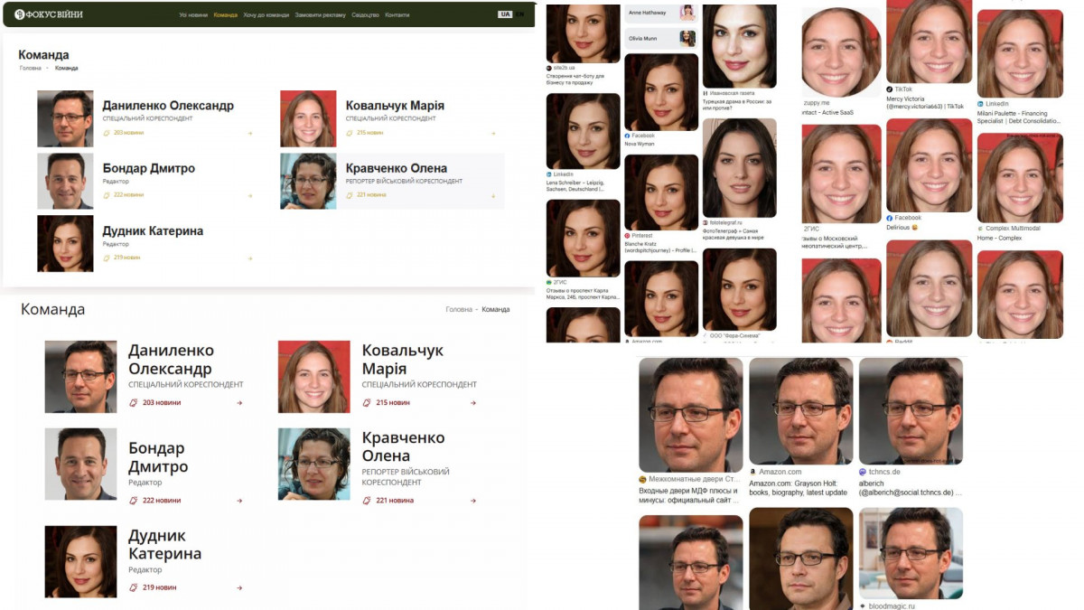 На сторінках Factum Info ТОВ «Серце Харкова» ніяк не згадується і зв’язок цих компаній на перший погляд незрозумілий. Згідно з реєстром, «Серце Харкова» — це інформаційне агентство, є однойменний сайт «Серця Харкова». У вкладці «Команда» вказано п’ятеро журналістів, але їхні фото згенеровані та використовуються в мережі на багатьох сайтах, під різними іменами. Ба більше, у цього сайту є клон — контент, оформлення, так звана команда — все наповнення сайту «Серце Харкова» дублюється з сайтом «Фокус війни». Це теж «інформаційне агентство», але зареєстроване на ТОВ «Перший столичний» у Харківській області, а дата заснування — 11 лютого 2025 року, що на день пізніше, ніж «Серце Харкова».
