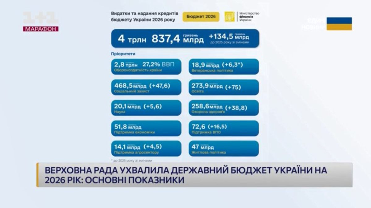 Ухвалення держбюджету-2026 в усіх матеріалах і в гостьових студіях коментували винятково представники або ж сателіти влади, про критику з боку опозиції взагалі не згадували.