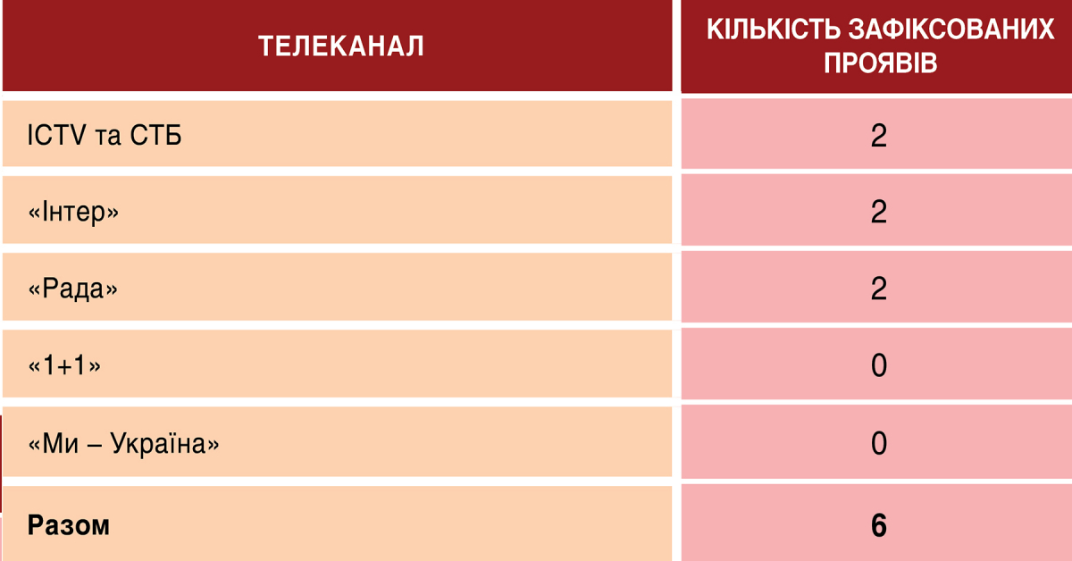 Наративів російської пропаганди в ефірах телемарафону і Першого каналу Суспільного в звітні дні не було. Ефіри «Інтера» і «Ради» вели токсичні ведучі цих каналів.