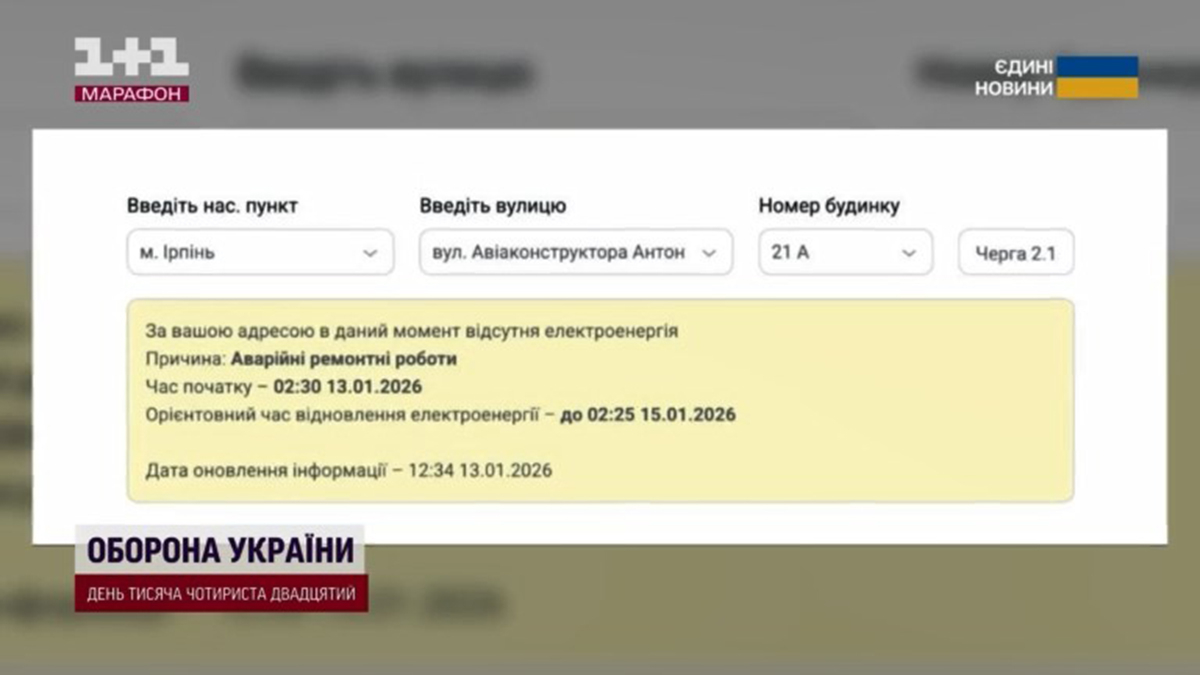У денному ефірі каналу «1+1» у новинах, крім коротких повідомлень і синхронів заступника міністра енергетики В’язовченка і керівника департаменту ДТЕК «Київські регіональні електромережі» Данила Патюка, робили пряме ввімкнення про роботу «пунктів незламності» в Києві і репортажний сюжет. Тему обговорили в гостьовій студії зі співзасновником і виконавчим директором Українського центру бещпеки та співпраці Дмитром Жмайлом (про стратегію ворожих ударів по інфраструктурі) і з членом Комітету ВР з питань енергетики і ЖКП Сергієм Нагорняком (про ситуацію в енергосистемі).