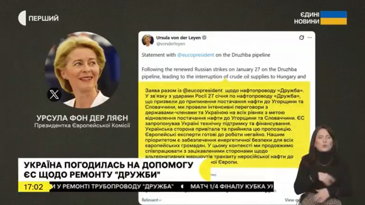 Україна погодилася на технічну і фінансову допомогу ЄС для видновлення роботи «Дружби». Єврокомісія: 90 млрд для України можуть розблокувати вже до п’ятниці після згоди відновити «Дружбу». Сійярто обурений пропозицією ЄС допомогти Україні відновити роботу «Дружби». Орбан: Без нафти — немає грошей. З заяви ЄС про «Дружбу» зникло речення щодо кредиту в 90 млрд і 20-го пакета санкцій проти Росії. Група експертів з ЄС відвідає пошкоджену ділянку «Дружби» вже 18 березня