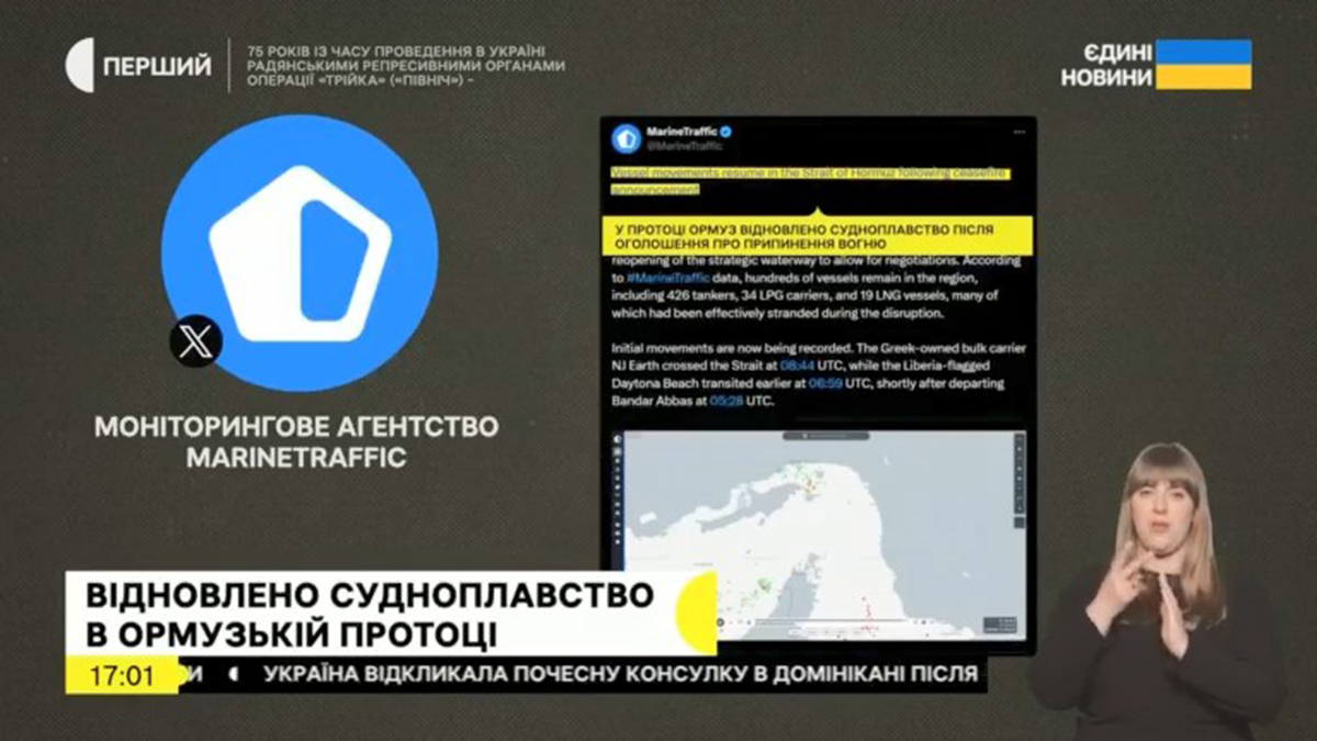 Про події повідомляли у формі БЗ. Цитували допис Трампа в соцмережі. Цитували Хаменеї. Цитували міністра Сибігу, канцлера Мерца, давали синхрон Макрона. Цитували реакцію Зеленського. Зробили пряме ввімкнення власної кореспондентки з Вашингтона з синхроном конгресвумен від Демократичної партії Мелані Стенсбері і з цитатою допису в соцмережі сенатора Ліндсі Грема. Давали трансляцію пресконференції міністра війни США Піта Гегсета і начальника комітету штабів Дена Кейна. Повідомляли усно про часткове відновлення судноплавства в Ормузькій протоці і про припинення Іраном рух суден протокою. Повідомляли усно про атаки Ірану на ОАЕ, Кувейт. Робили пряме ввімкнення кореспондентки з Брюсселя про реакції лідерів ЄС на перемир’я з синхронами речниці Єврокомісії Анни-Кайси Ітконен, цитували допис прем’єра Іспанії Педро Санчеса. Робили пряме ввімкнення кореспондентки про зустріч Рубіо і Рютте у Вашингтоні. Цитували прем’єр-міністра Пакистану Шахбара Шаріфа про порушення режиму припинення вогню. На вечір зробили оглядовий сюжет. У розмовних студіях каналу протягом дня обговорювали тематику з виконавчим директором і ведучим радіо UA Chicago Дмитром Галаном, воєнним експертом Андрієм Ткачуком (про консультації українських військових для розблокування Ормузької протоки), докторкою політичних наук Андріаною Костенко, директором Центру близькосхідних досліджень Ігорем Семиволосом, аналітиком з міжнародної політики Аналітиччного центру Adastra Олександром Колесніченком, кандидатом політичних наук Станіславом Желіховським, виконавчим директором Центру прикладних політичних досліджень «Пента» Олександром Леоновим, докторкою філософії, політологинею Мирославою Майніною, сходознавцем, експертом Центру громадянських свобод В’ячеславом Ліхачовим, експертом Центру відносин США — Україна Андрієм Добрянським, виконавчим директором Інституту трансформації Північної Євразії Володимиром Горбачем.