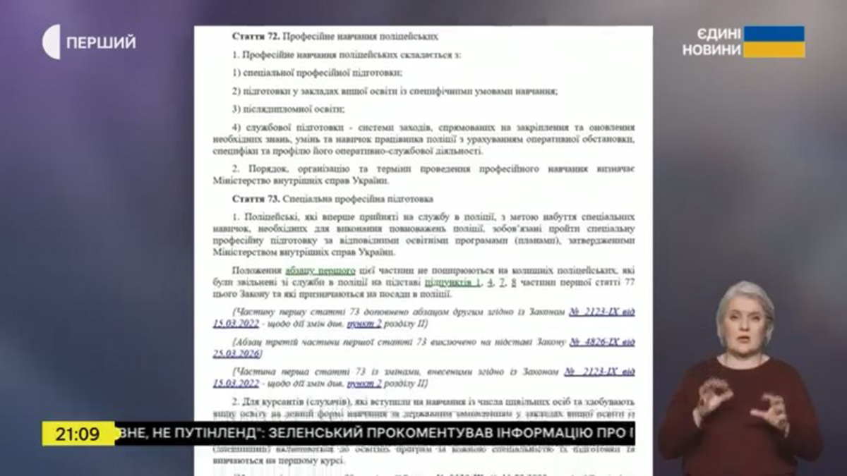 Навіщось показували динамічний скриншот із телеграм-сторінки президента Зеленського і скриншот зі сторінки Сухопутних військ у фейсбуці. Зробили ось таку «адаптацію» скриншота.