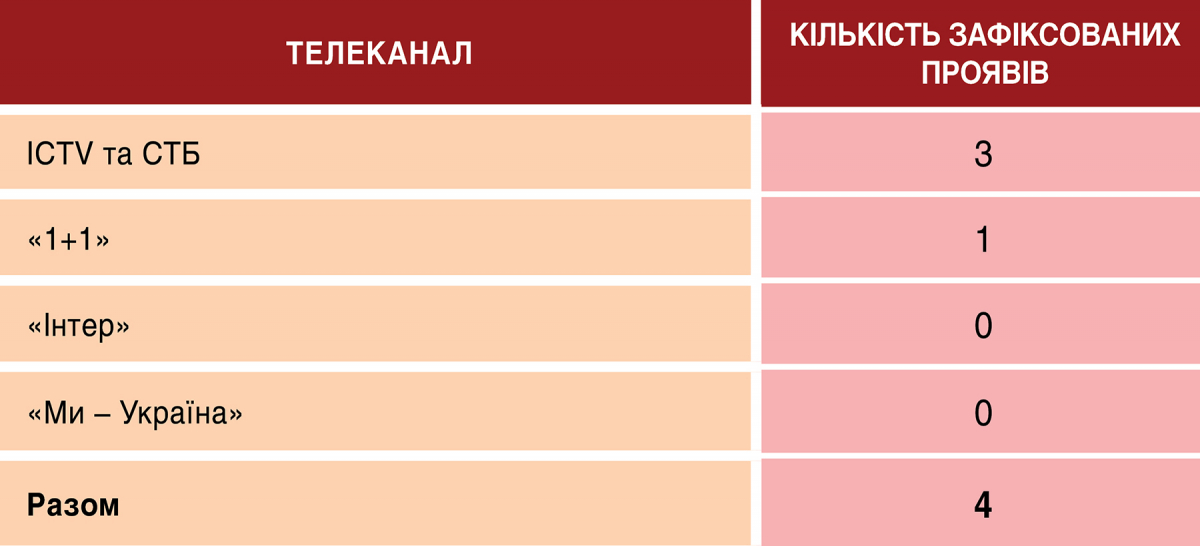 У ранковому ефірі каналу «Інтер» про це не повідомляли. У денному ефірі каналу «1+1» повідомили усно на фото. У вечірньому ефірі каналу «Ми — Україна» про подію не повідомляли.
