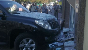 Блондинка на джипе протаранила офис информагентства в центре Киева (ФОТО)
