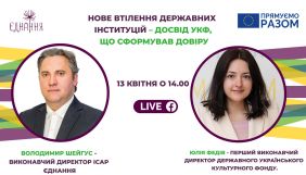 13 квітня — обговорення «Нове втілення державних інституцій — досвід УКФ, що сформував довіру»