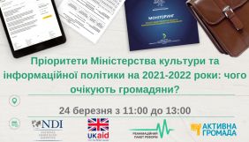 24 березня – публічне обговорення «Пріоритети Міністерства культури та інформаційної політики на 2021-2022 роки: чого очікують громадяни?»