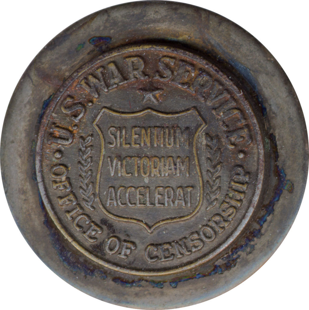 Такий значок носили співробітники Управління цензури. Латинський девіз на ньому - Silentium Victoriam Accelerat, Тиша пришвидшує перемогу