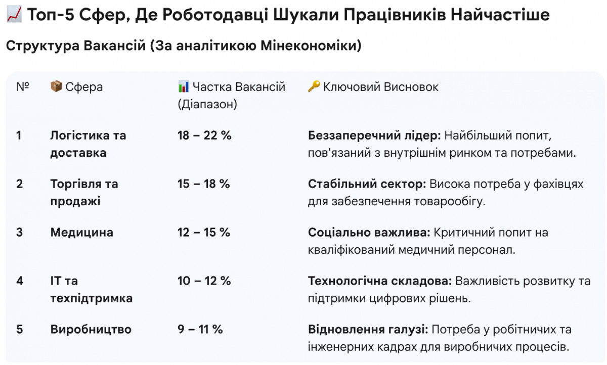 Попит був стабільно високим у сферах із дефіцитом кадрів: медичні заклади, кур’єрські служби, служби техпідтримки.