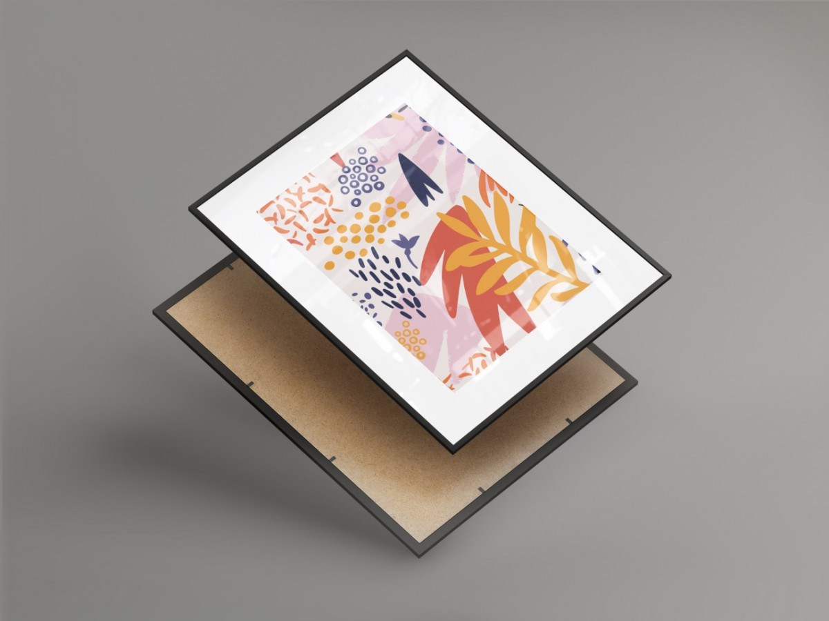 - Постер – виріб схожий на картину, проте друк виконується на фотопапері, який згодом вставляється під скло/акрил. Постер обов'язково обрамляється в раму для фіксації сюжету між задником і склом.